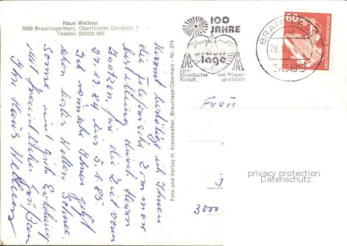 72333054 alte Postkarte Braunlage Harz Haus Wellner postalisch gelaufen Erhaltung siehe scans KatCode: 11110003153003