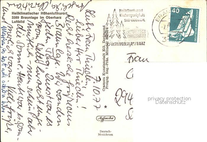 72428177 alte Postkarte Braunlage Harz Heilklimatischer Hoehenluftkurort Fliegeraufnahme postalisch gelaufen Erhaltung siehe scans KatCode: 11110003153003