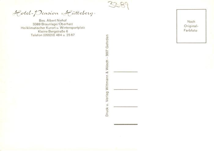 73923652 Braunlage Harz Hotel Huetteberg postalisch nicht gelaufen Erhaltung siehe scans [WerneD78] Wern Katcode 11110003153003