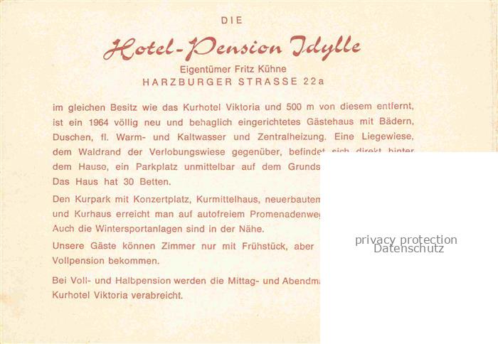 74023978 Braunlage Harz Hotel Pension Idylle postalisch nicht gelaufen Werbekarte (keine Postkarte) Erhaltung siehe scans [WerneD78] Werbekarte (keine Postkarte) Wern Katcode 11110003153003