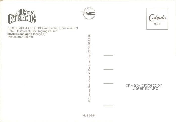 72271536 Braunlage Harz Hotel Restaurant Bar Tagungsraeume postalisch nicht gelaufen Erhaltung siehe scans KatCode: 11110003153003