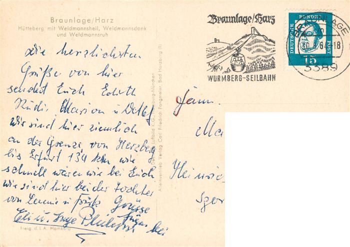 73903929 Braunlage Harz Huetteberg mit Weidmannsheil Weidmannsdank und Weidmannsruh Fliegeraufnahme postalisch gelaufen Erhaltung siehe scans [FriedD77] alte Postkarte Frie Katcode 11110003153003