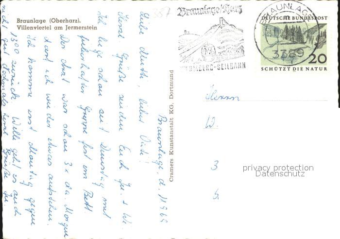 72606474 alte Postkarte Braunlage Harz Jermerstein postalisch gelaufen Erhaltung siehe scans [NatalD47] KatCode: 11110003153003