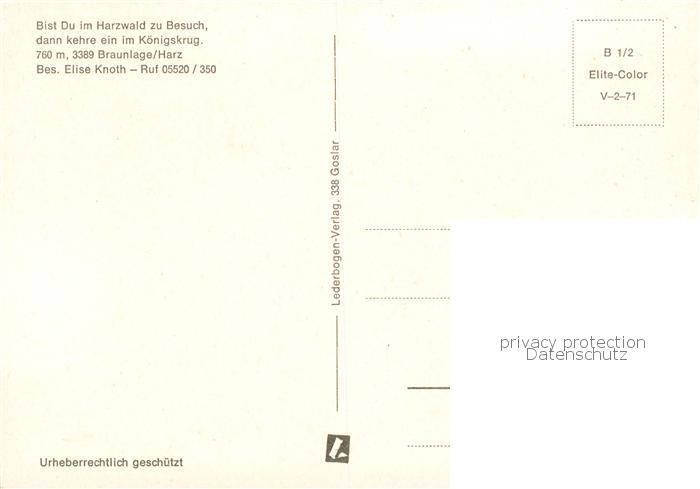 73796659 Braunlage Harz Koenigskrug Restaurant postalisch nicht gelaufen Erhaltung siehe scans [WerneD78] Wern Katcode 11110003153003