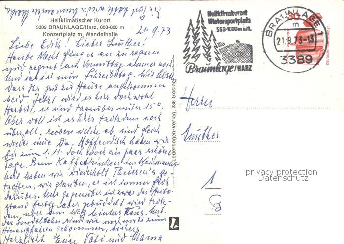 72435109 alte Postkarte Braunlage Harz Konzertplatz Wandelhalle postalisch gelaufen Erhaltung siehe scans KatCode: 11110003153003