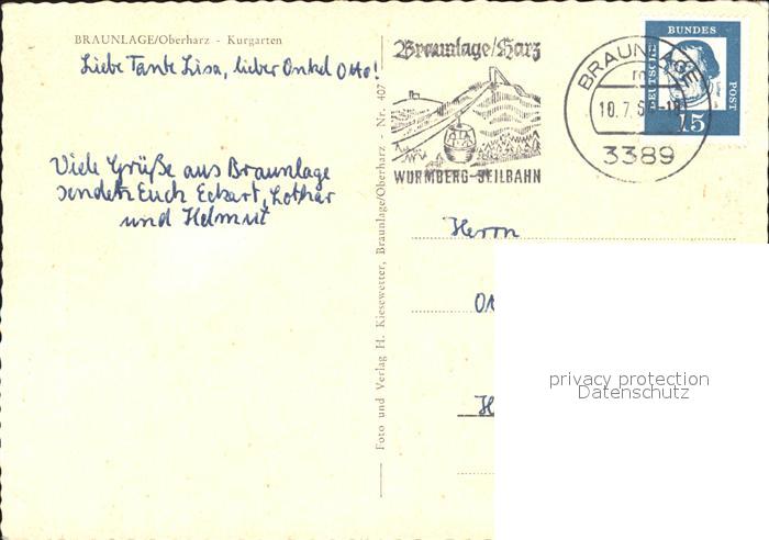 72364841 alte Postkarte Braunlage Harz Kurgarten postalisch gelaufen Erhaltung siehe scans KatCode: 11110003153003
