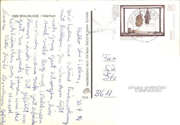 72479234 alte Postkarte Braunlage Harz Kurgastzentrum Fliegeraufnahme Kurpark Herz.-Wilh.Str. postalisch gelaufen Erhaltung siehe scans KatCode: 11110003153003