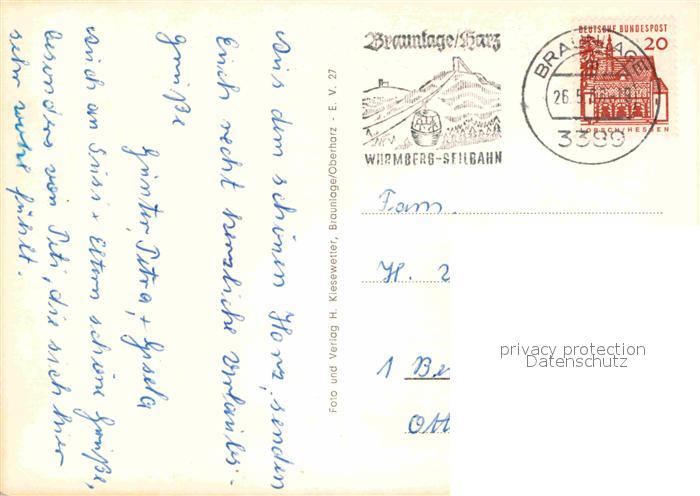 72794004 alte Postkarte Braunlage Harz Kurhaus Brocken Kurpark postalisch gelaufen Erhaltung siehe scans [AndreD76] KatCode: 11110003153003