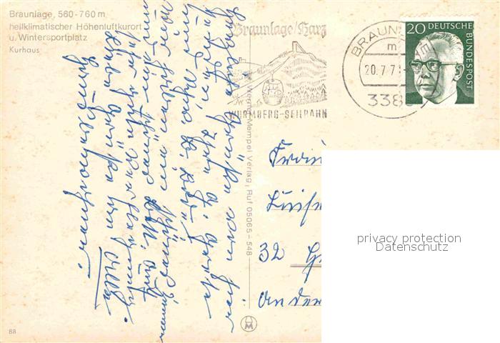 72697685 alte Postkarte Braunlage Harz Kurhaus Heilklimatischer Hoehenluftkurort postalisch gelaufen Erhaltung siehe scans [FriedD77] KatCode: 11110003153003