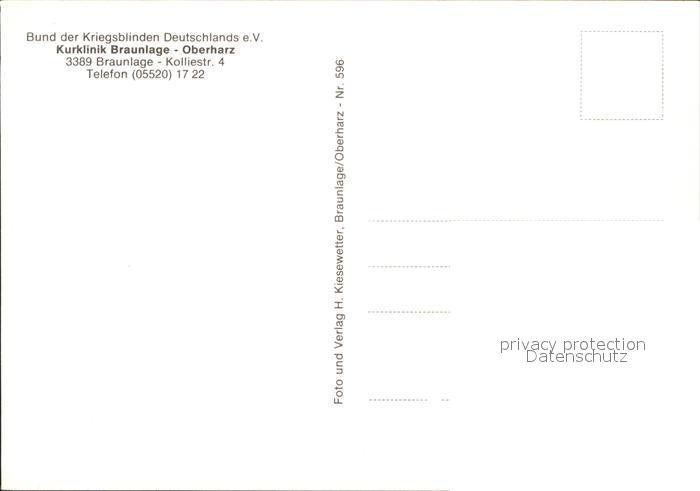 71928483 Braunlage Harz Kurklinik postalisch nicht gelaufen Erhaltung siehe scans KatCode: 11110003153003