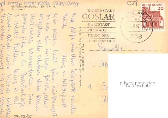 72893349 alte Postkarte Braunlage Harz Kurkonzert postalisch gelaufen Erhaltung siehe scans [PaolaD17] KatCode: 11110003153003