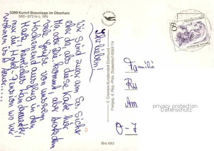 72804877 alte Postkarte Braunlage Harz Kurort Fliegeraufnahme postalisch gelaufen Erhaltung siehe scans [FriedD77] KatCode: 11110003153003