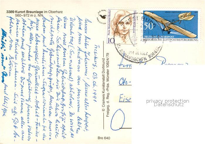 73704613 Braunlage Harz Kurort postalisch gelaufen Fliegeraufnahme Erhaltung siehe scans [FriedD77] Fliegeraufnahme alte Postkarte Frie Katcode 11110003153003
