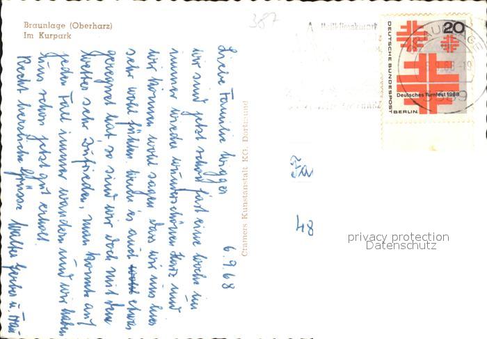 72606471 alte Postkarte Braunlage Harz Kurpark postalisch gelaufen Erhaltung siehe scans [NatalD47] KatCode: 11110003153003