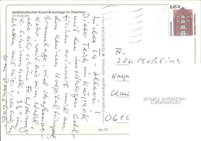 72570526 Braunlage Harz Kurpark postalisch nicht gelaufen Erhaltung siehe scans [AndreD76] KatCode: 11110003153003