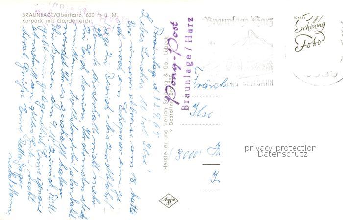73811835 Braunlage Harz Kurpark mit Gondelteich postalisch nicht gelaufen Erhaltung siehe scans [WerneD78] Wern Katcode 11110003153003