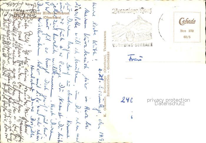 72478726 alte Postkarte Braunlage Harz Luftbild postalisch gelaufen Erhaltung siehe scans KatCode: 11110003153003