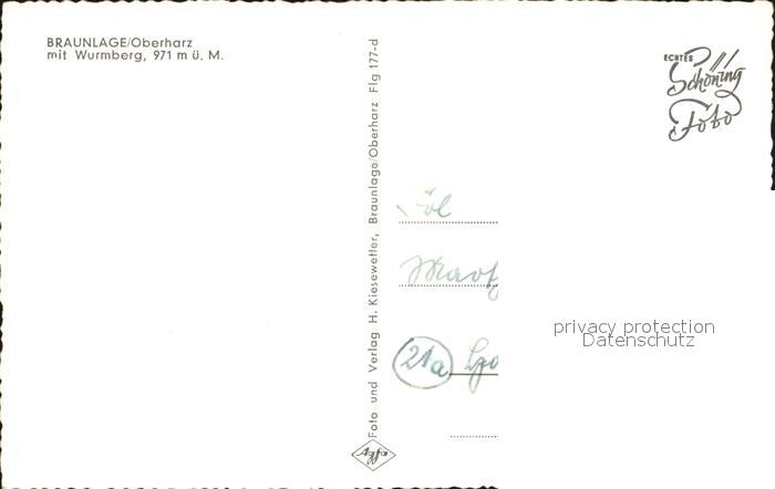 72460906 Braunlage Harz mit Wurmberg Fliegeraufnahme postalisch nicht gelaufen Erhaltung siehe scans KatCode: 11110003153003