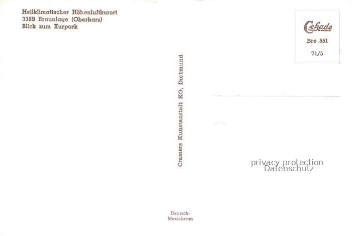 74154826 Braunlage Harz Niedersachsen Blick zum Kurpark postalisch nicht gelaufen Erhaltung siehe scans [WerneD78] KatCode: 11110003153003