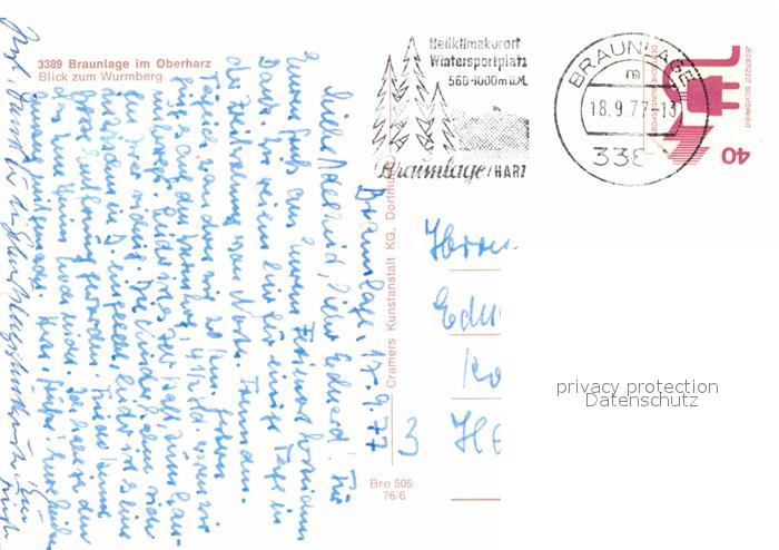 72760326 alte Postkarte Braunlage Harz Panorama Blick zum Wurmberg postalisch gelaufen Erhaltung siehe scans [FriedD77] KatCode: 11110003153003