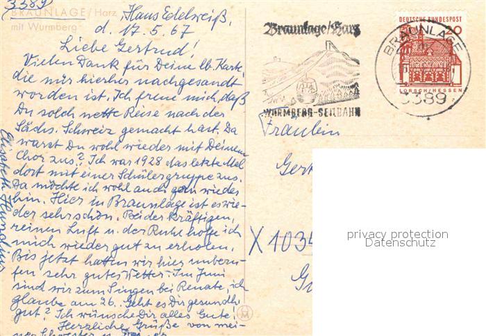 72885606 alte Postkarte Braunlage Harz Panorama Hoehenluftkurort mit Wurmberg postalisch gelaufen Erhaltung siehe scans [FriedD77] KatCode: 11110003153003