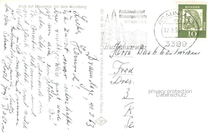 73811836 Braunlage Harz Panorama mit dem Wurmberg postalisch gelaufen Erhaltung siehe scans [WerneD78] alte Postkarte Wern Katcode 11110003153003