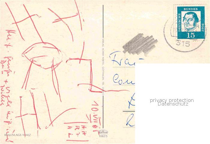 72743030 alte Postkarte Braunlage Harz Partie am Wasser postalisch gelaufen Erhaltung siehe scans [LiesaD40] KatCode: 11110003153003