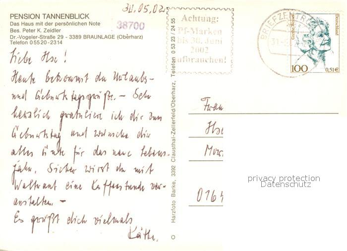 73666654 Braunlage Harz Pension Tannenblick Liegewiese Gaststube postalisch gelaufen Erhaltung siehe scans [WerneD78] alte Postkarte Wern Katcode 11110003153003