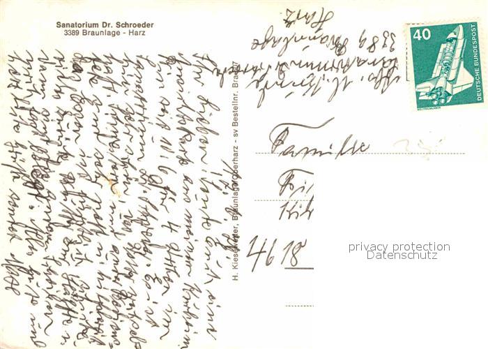 72855073 alte Postkarte Braunlage Harz Sanatorium Doktor Schroeder postalisch gelaufen Erhaltung siehe scans [AndreD76] KatCode: 11110003153003