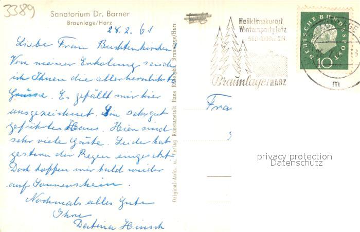 73693138 Braunlage Harz Sanatorium Dr Barner postalisch gelaufen Erhaltung siehe scans [WerneD78] alte Postkarte Wern Katcode 11110003153003