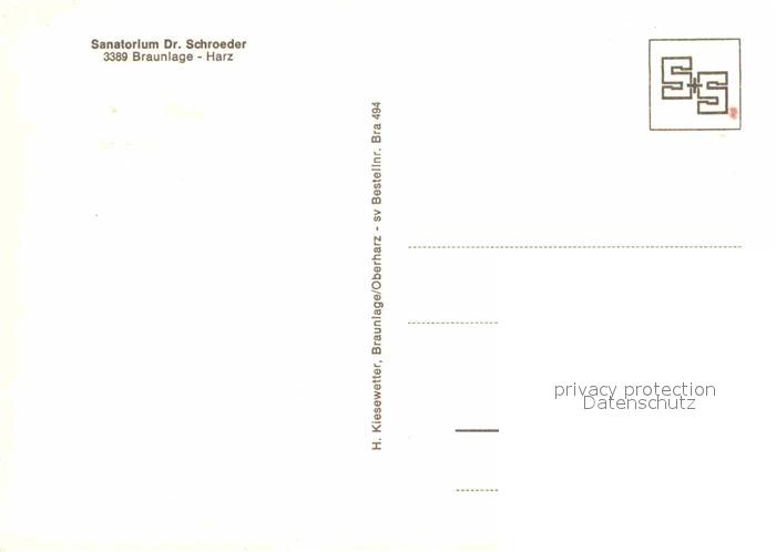 72798647 Braunlage Harz Sanatorium Dr Schroeder postalisch nicht gelaufen Erhaltung siehe scans [FriedD77] KatCode: 11110003153003