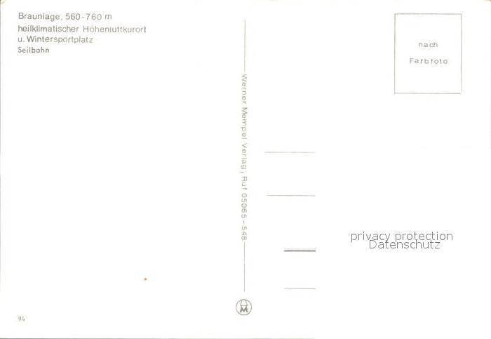 71908919 Braunlage Harz Seilbahn postalisch nicht gelaufen Erhaltung siehe scans KatCode: 11110003153003