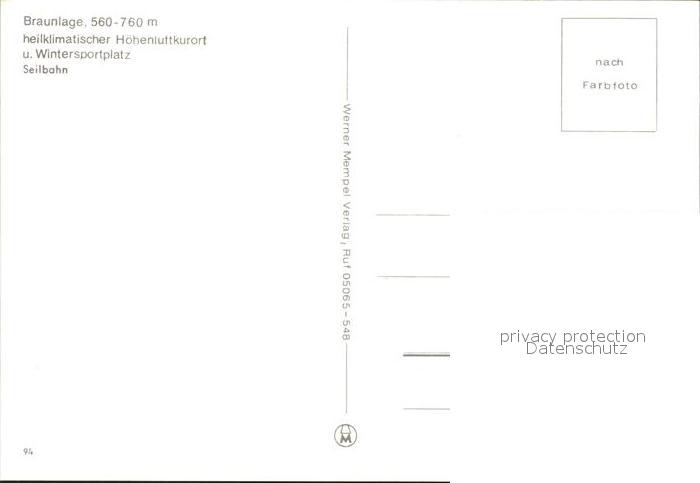 71899357 Braunlage Harz Seilbahn Hoehenluftkurort und Wintersportplatz postalisch nicht gelaufen Erhaltung siehe scans KatCode: 11110003153003