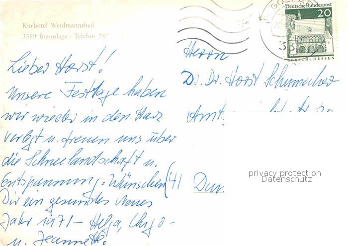 72696812 alte Postkarte Braunlage Harz Winter Kurhotel Braunlage postalisch gelaufen Erhaltung siehe scans [KathaD79] KatCode: 11110003153003