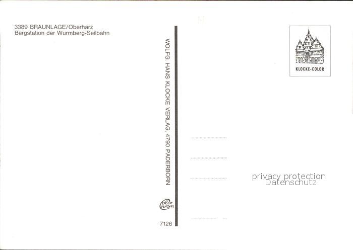71901881 Braunlage Harz Wurmberg Seilbahn postalisch nicht gelaufen Erhaltung siehe scans KatCode: 11110003153003