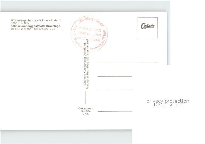 72015425 Braunlage Harz Wurmbergschanze mit Aussichtsturm postalisch nicht gelaufen Erhaltung siehe scans KatCode: 11110003153003