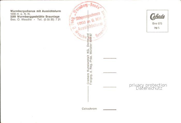 71901956 Braunlage Harz Wurmbergschanze mit Aussichtsturm postalisch nicht gelaufen Erhaltung siehe scans KatCode: 11110003153003