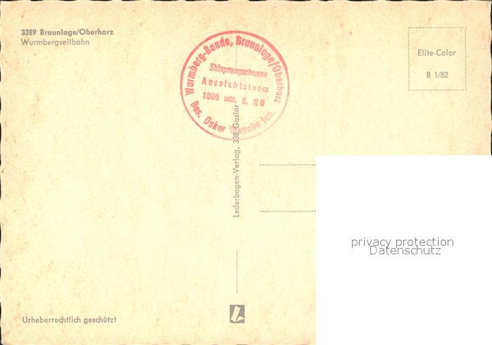71974051 Braunlage Harz Wurmbergseilbahn postalisch nicht gelaufen Erhaltung siehe scans KatCode: 11110003153003