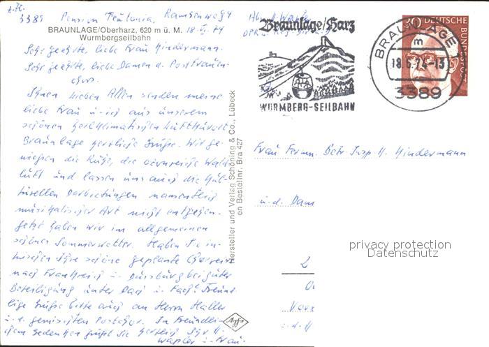 72537754 alte Postkarte Braunlage Harz Wurmbergseilbahn postalisch gelaufen Erhaltung siehe scans [LiesaD40 kt120box] KatCode: 11110003153003
