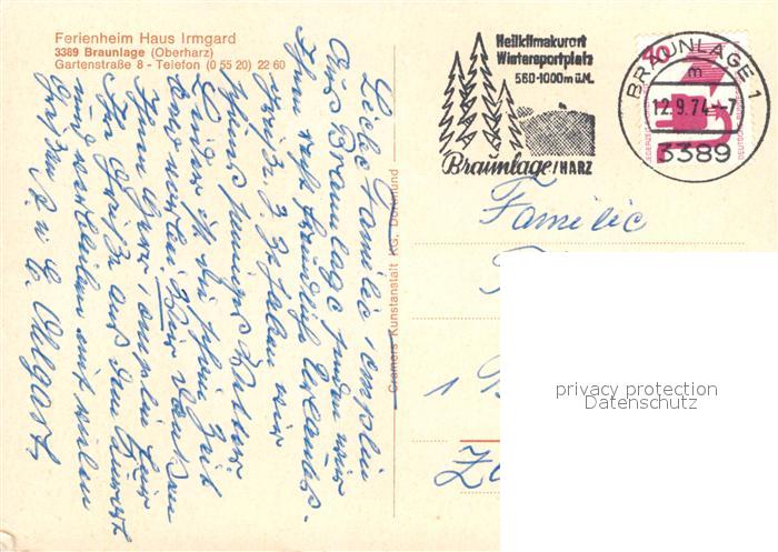 72937268 alte Postkarte Braunlage Haus Irmgard Kurpark postalisch gelaufen Erhaltung siehe scans [WerneD78] KatCode: 11110003153003