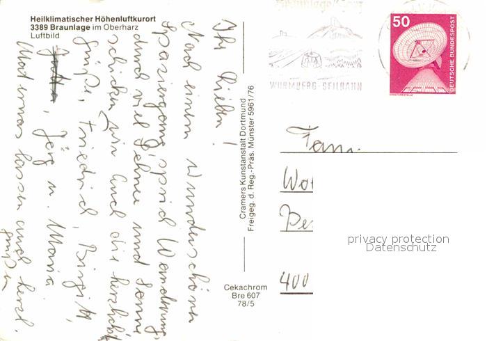 72908963 alte Postkarte Braunlage Hoehenluftkurort Fliegeraufnahme postalisch gelaufen Erhaltung siehe scans [FriedD77] KatCode: 11110003153003