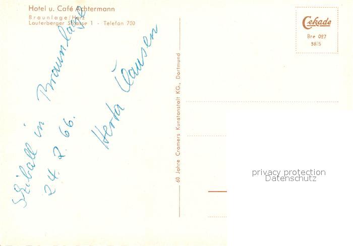 73160851 Braunlage Hotel Achtermann Cafe postalisch nicht gelaufen Erhaltung siehe scans [WerneD78] KatCode: 11110003153003