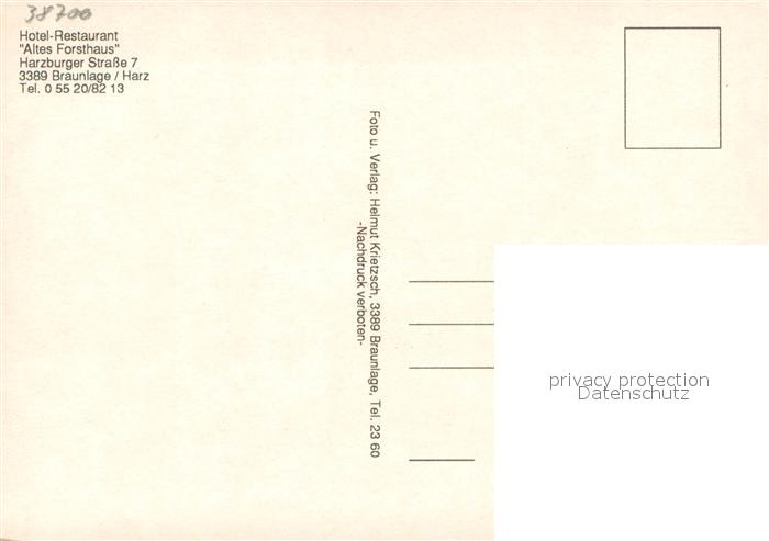 73666652 Braunlage Hotel Restaurant Altes Forsthaus postalisch nicht gelaufen Erhaltung siehe scans [WerneD78] KatCode: 11110003153003