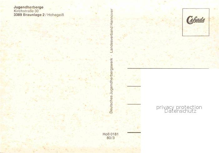 72908315 Braunlage Jugendherberge Hohegeiss postalisch nicht gelaufen Erhaltung siehe scans [LiesaD40] KatCode: 11110003153003