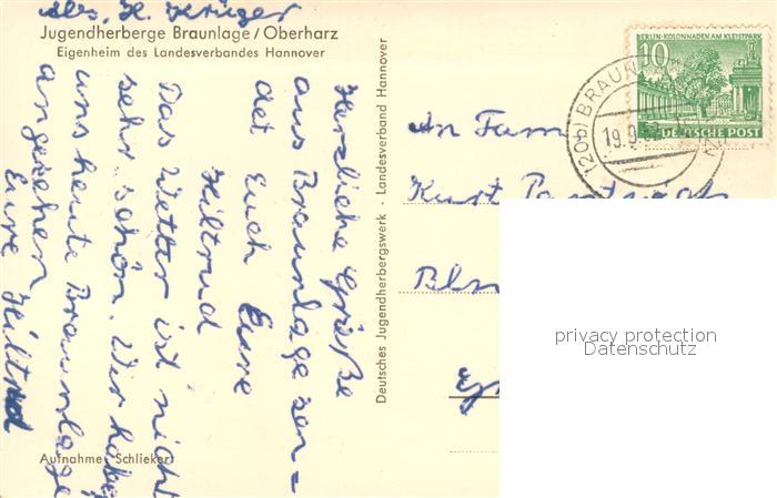 73614807 alte Postkarte Braunlage Jugendherberge postalisch gelaufen Erhaltung siehe scans [WerneD78] KatCode: 11110003153003