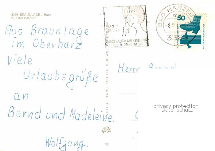 72915678 alte Postkarte Braunlage Kunsteisstadion postalisch gelaufen Erhaltung siehe scans [KathaD81] KatCode: 11110003153003