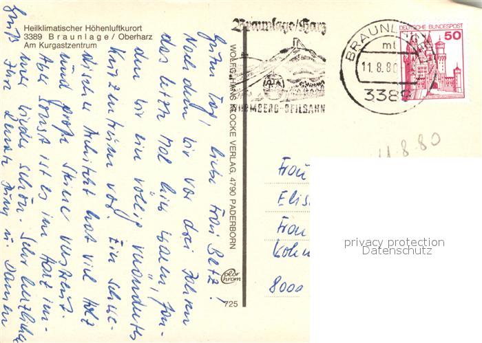 73149064 alte Postkarte Braunlage Kurgastzentrum Park postalisch gelaufen Erhaltung siehe scans [FriedD77] KatCode: 11110003153003