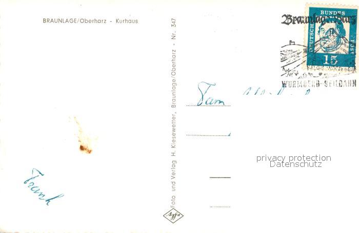 73331181 alte Postkarte Braunlage Kurhaus postalisch gelaufen Erhaltung siehe scans [WerneD78] KatCode: 11110003153003