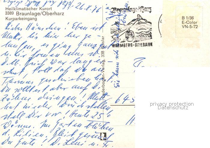 73240428 alte Postkarte Braunlage Kurparkeingang postalisch gelaufen Erhaltung siehe scans [KathaD81] KatCode: 11110003153003