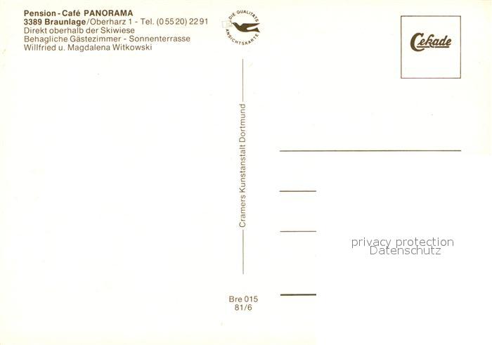 73172610 Braunlage Pension Cafe Panorama postalisch nicht gelaufen Erhaltung siehe scans [FriedD77] KatCode: 11110003153003
